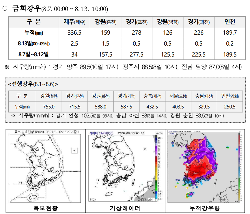 8월 13일 호우 예보 개요