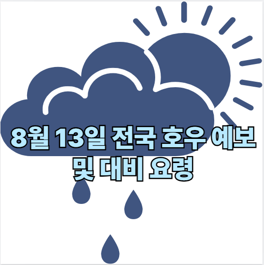 📍 ALT 텍스트 예시: "8월 13일 전국 호우 예보 지도 - 충남, 수도권, 강원 일부 집중호우"